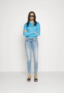 7 For All Mankind Skinny Jeans Entspannte Röhrenjeans Schlanke Illusion Posiert Blue